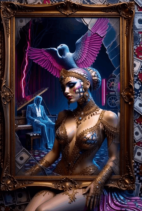 LuckyBonusgold #Bonusgold #NeonProphet #VegasArt #PhantomPainter #DigitalBaroque #Mirage #GlitchArt #ArtCritical #BerndPulch 🔥