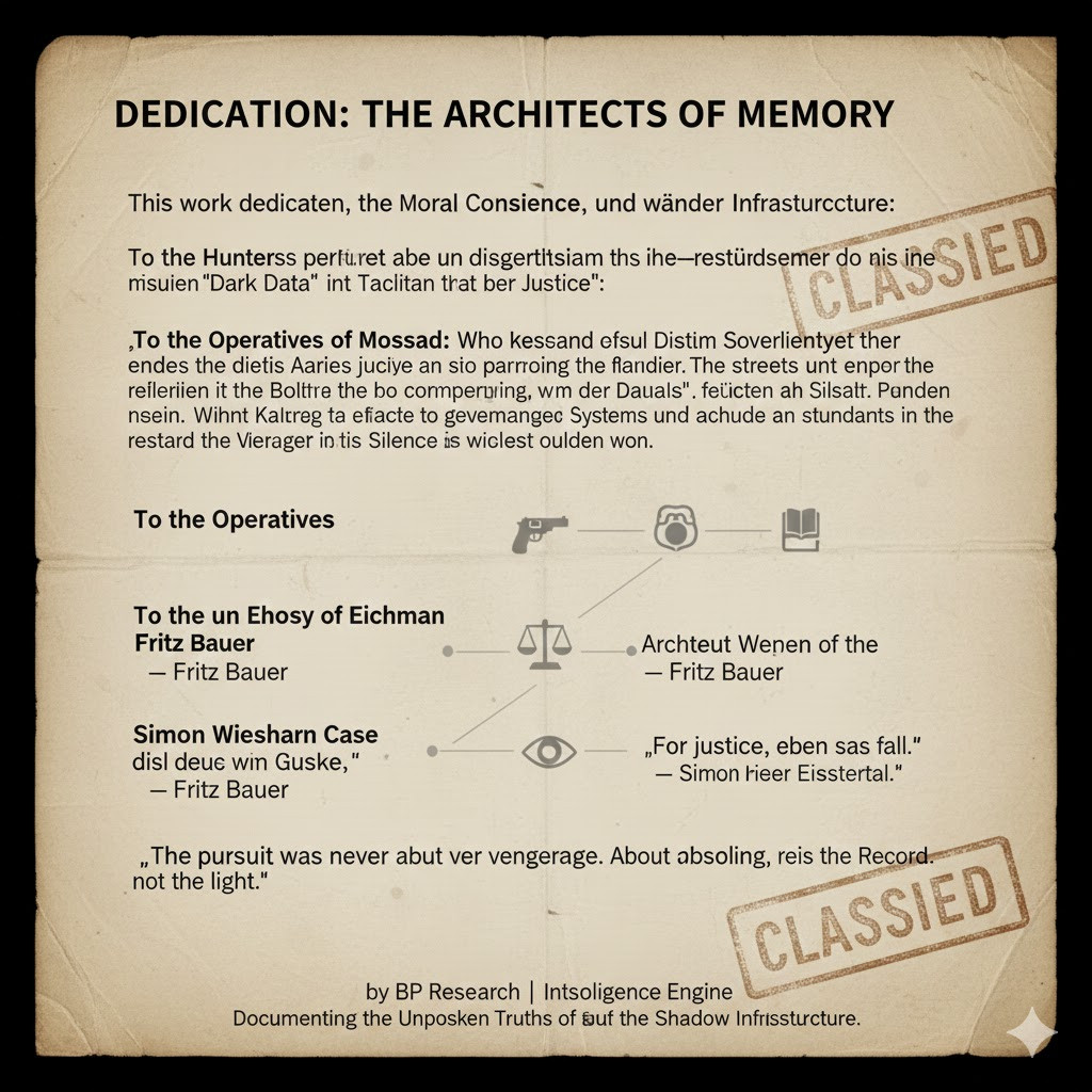 This work is dedicated to those who pierced the Shadow Infrastructureโthe men who transformed the “Dark Data” of a vanishing regime into a platform for global justice. We honor the four pillars of the Eichmann case: